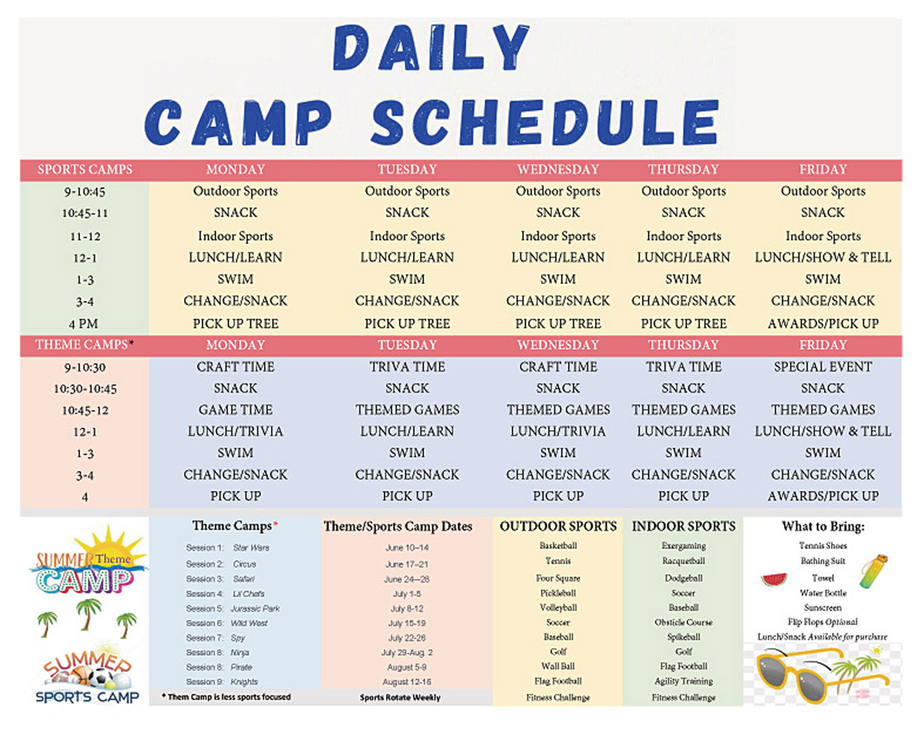 Swimming—Recreational swimming and water games will be a daily part of the Camp curriculum. Private & Group Swim Lessons also available.